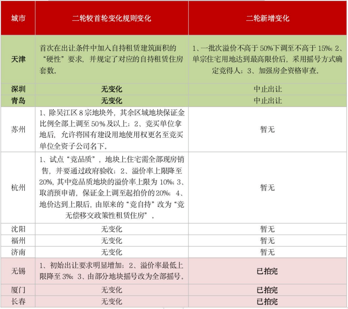 而此前,已有部分城市调整了第二轮土地集中出让规则。