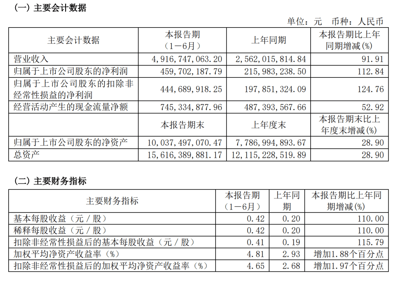 乐居财经讯 邓如菲 8月19日,宁波拓普集团股份有限公司(以下简称“拓普集团”)发布2021年半年度报告。报告显示,拓普集团2021年1-6月营业收入49.17亿元,比上年同期增长91.91%。归属于上市公司股东的净利润为4.6亿,比上年同期增长112.84%。具体情况如下图: