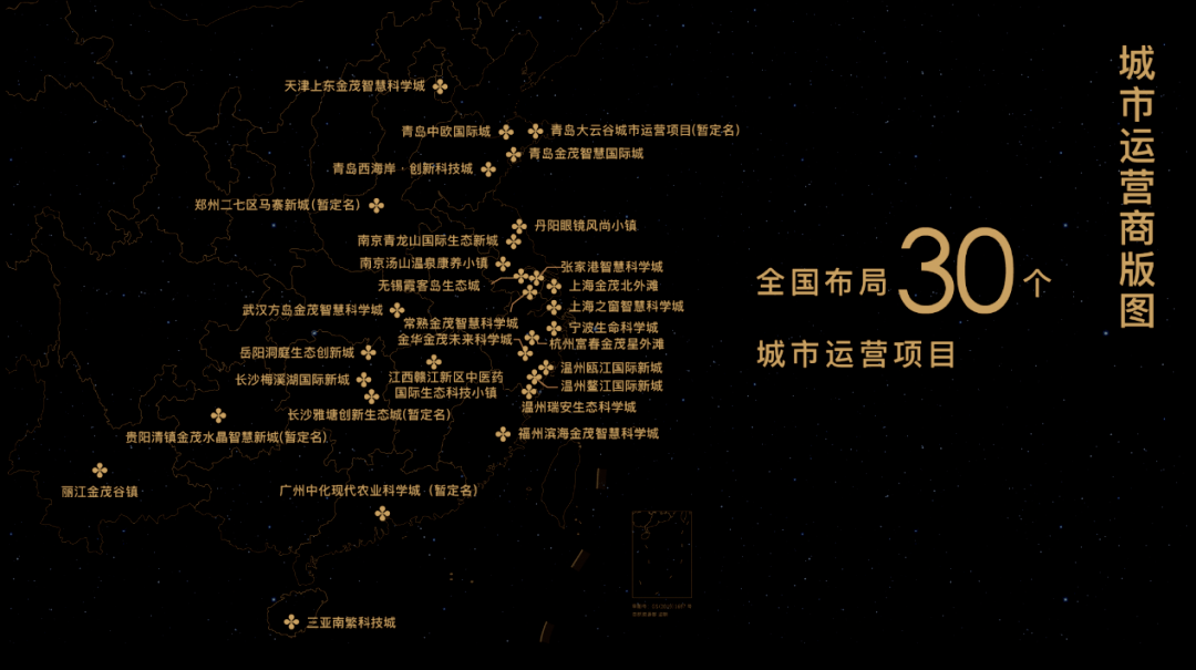 在资金运用和控制上,金茂一直保持着高度自律。“三条红线”保持零踩线,中国金茂在今年上半年的净负债率为51.64%,现金短债比为1.26倍,剔除预收款后的资产负债率68.92%。此外,融资成本下降至4.01%,其中外币债务融资成本低至2.33%。同时,其在期内的利息费用同比减少23%至31.47亿元,利息资本化开支同比减少44%至28.74亿元。城市运营优势扩大作为金茂的“第二曲线”,城市运营是其一大特色。截至目前,金茂在全国共有30个项目,全年计划新获取8个,预计三年后城市运营将为金茂贡献60%的新增土地储备。