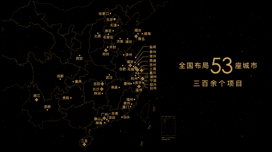2021年6月,金茂发布酒店自有五大品牌,通过科技体系搭建及场景应用,为轻资产战略提供新动能,本期内还新增6个轻资产项目签约,累计开业及筹建酒店近30家。布局扩大至53城,优质土储高占比在土地拓展方面,金茂一直坚持聚焦一二线、深耕现有城市的策略,秉持质量为先的原则,依托城市运营、城市更新、收并购等多种方式低成本拿地,上半年的平均溢价率仅16.3%,低于行业平均水平。今年上半年,金茂新获取长沙雅塘创新生态城、贵阳清镇金茂水晶智慧新城、南昌赣江新区中医药国际生态科技小镇3个城市运营项目。截至目前,金茂共有土地储备8500万方,共在全国布局了53座城市,共计300余个项目。