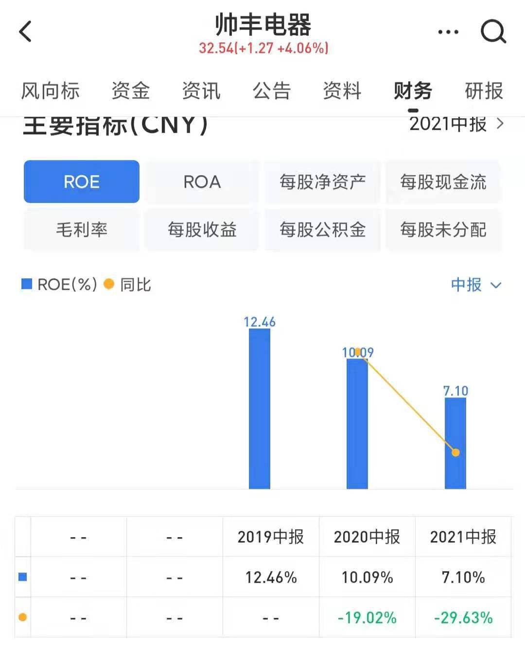同时,帅丰电器资产净收益率连续两年下降,2021年上半年该数据为7.1%,较2020年上半年10.09%下降29.63%。2020年上半年,其资产净收益率则较2019年下降19.02%。