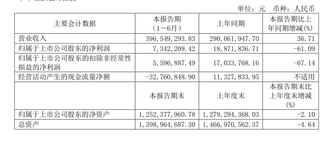 根据公告,公司实现营业收入3.97亿元,同比增加36.71%;归属上市公司股东的净利润734万元,同比减少61.09%;基本每股收益盈利0.03元。