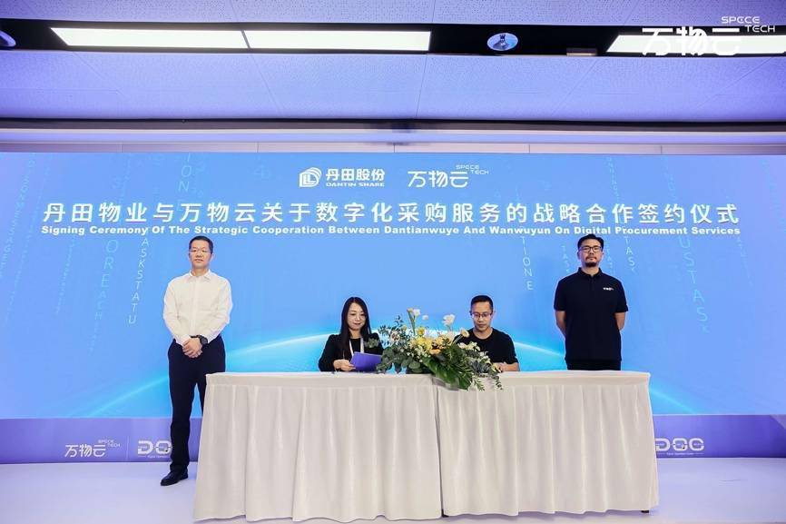 发布会上,深地铁物业、丹田物业作为数字化采购服务产品的首批客户,与万物云签署战略合作协议。