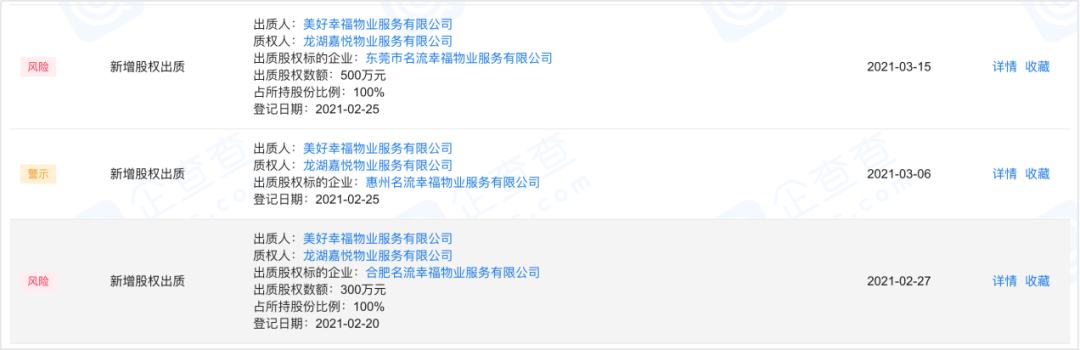 而事实上,目前刘道明的小女儿刘南希已经被推到台前担重任。今年4月7日,美好置业发布公告,董事、总裁何飞,副总裁尹沧因个人原因向董事会提起书面辞职报告;之后,美好置业提名刘南希为第九届董事会董事候选人,聘任副董事长吕卉兼任总裁,聘任李俊峰担任副总裁。除了职位接任外,今年5月发布的公告中,刘南希还受让付文高、刘运梅所持有的美好未来集团合计40%股权。为什么是惠州名流物业?当初打包卖出去的3家物业,为什么刘道明选择“拿回”了惠州名流物业?对比合肥名流物业、惠州名流物业、东莞名流物业,在3家中,惠州名流物业的特色并不算突出。3家经营范围大致相同,均属于房地产行业。企查查资料介绍,惠州名流物业成立于2011年7月18日,法定代表人为吕卉,注册资本为300万元。合肥名流物业在3家中成立时间最早,于2010年7月22日,法定代表人为袁冬梅,注册资本为300万元;而东莞名流物业的注册资本最高,为500万元,不过成立时间属于3家中最晚的,为2012年。由于3家均未公示各自业绩,很难从盈利指标上看到经营规模,不过从其入社保的人数可以窥见其规模大小。合肥名流物业入社保22人,东莞名流物业入社保的有17人,而惠州名流物业的人数最少,入社保有12人。对比起来,惠州名流物业在3家中属于“最干净”的公司。乐居财经了解到,成立10年的时间,其自身风险、关联风险均为0,涉及到的唯一风险便是在今年2月质押给龙湖嘉悦物业服务有限公司的动态,且目前状态已显示“无效”。