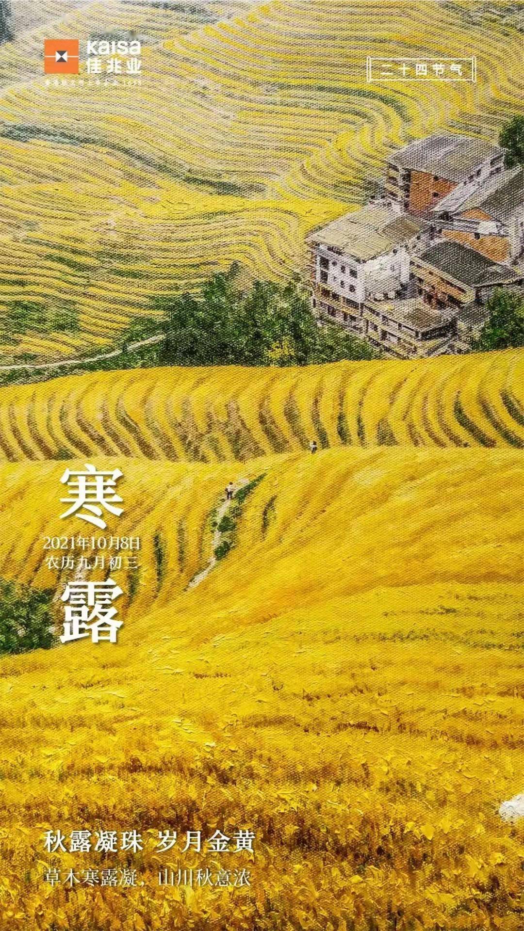 点评词为:秋露凝珠,岁月金黄。草木寒露凝,山川秋意浓。