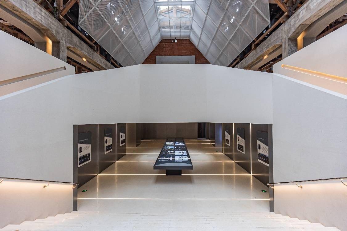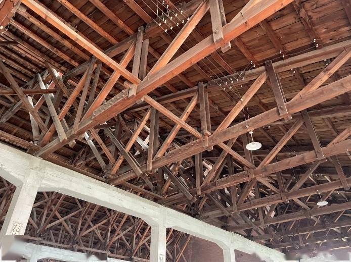 为了将东贸库“旧貌换新颜”,且保证原有木质结构可以作为历史印记留存观赏,历史保护建筑屋面每隔三品将原木桁架更换为钢桁架作为受力支撑,将原有屋面瓦更换为更具采光效果的玻璃屋面及钛锌板结构。这项工程历时80天,从钢桁架的替换直到玻璃幕的安装,屋面全部敞开,工期内正逢沈阳持续阴雨大风天气,几百名工人披着雨披一同施工,“小雨不下场,大雨不停工”。80天施工过程中的坚持,克服一切阻碍,最终做到了修旧如旧,在保留历史风貌的同时让早已尘封的工业遗存焕发新的活力。