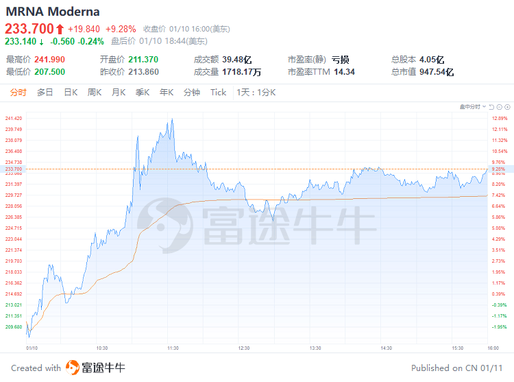 抗疫概念股集体上涨,Moderna涨超9%,诺瓦瓦克斯医药涨超6%。热门中概股涨跌不一,精锐教育跌超33%,小鹏汽车、理想汽车跌超5%;哔哩哔哩涨超6%。美股航空股全线走低,波音、美国航空、达美航空跌超2%。