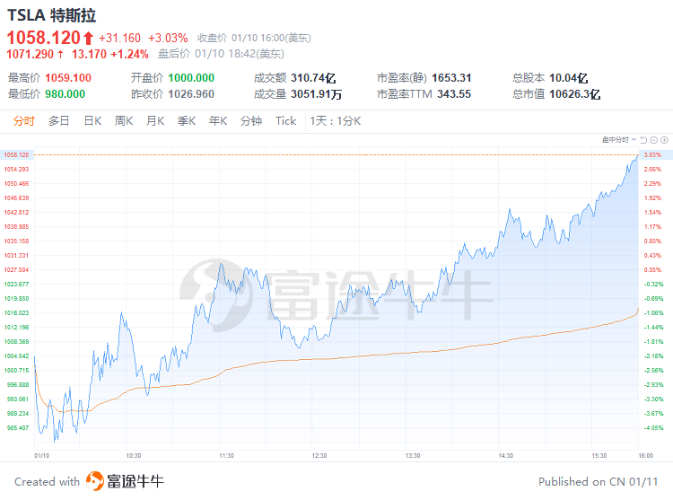 高盛分析师马克·德莱尼周一将$特斯拉(TSLA.US)$加入其2022年「首选股票」名单,维持对该股的「买入」评级,并将其目标价从1125美元上调至1200美元,因该公司「第四季度交付强劲」,并认为这是今年和明年销量进一步增长的信号。他还提到了特斯拉在硬件和软件方面的垂直整合、充电站生态系统,以及在太阳能和存储领域的增长潜力。截至收盘,特斯拉涨超3%。