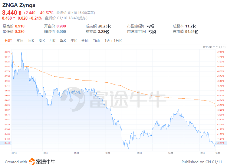 相关阅读:成交额TOP20:社交游戏开发商Zynga飙涨40%,获Take-Two作价127亿美元收购