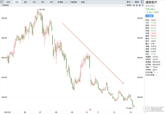 提到种植牙大家自然会想到通策医疗,通策医疗是根植浙江省的口腔医疗服务行业龙头,过往业绩表现十分优异,但公司股价却从21年7月份以来跌跌不休,目前股价较前期高点已经腰斩,套牢了一大波抄底的投资者。