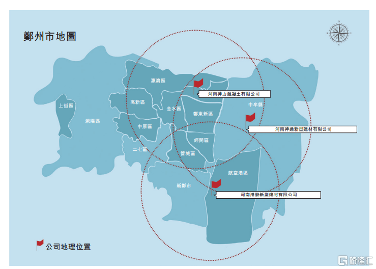 值得一提的是,由于预拌混凝土产品会在短时间内凝固,产品的地理销售半径有限,维持在大约3公里以内。自2003年成立以来,截至最后实际可行日期,公司经营的神力搅拌站、神通搅拌站及港发搅拌站这三个搅拌站,均位于郑州东北部、东部及东南部地区,由此可见,神力建材存在业务区域集中的问题。