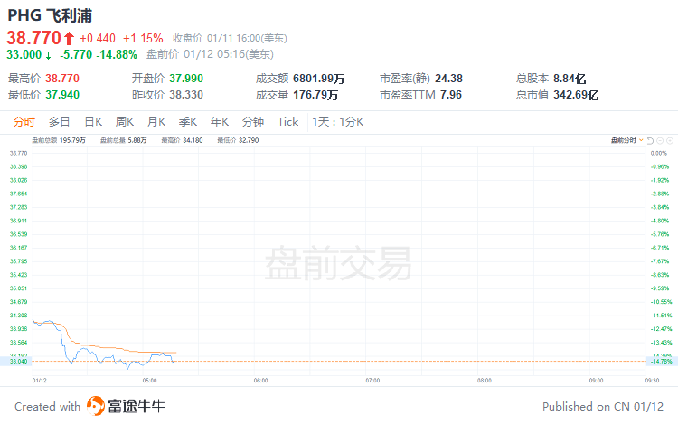飞利浦盘前大跌逾14%,此前下调2021Q4销售额预期。