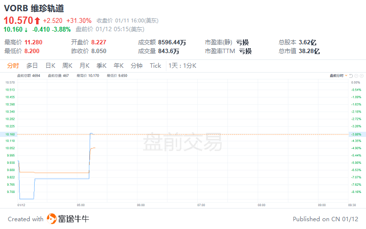 $维珍轨道(VORB.US)$表示最早将于当地时间周三(1月12日)进行第三次商业太空飞行,昨日大涨逾31%,股价创历史新高,今日盘前回调近4%。