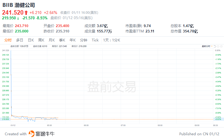 $渤健公司(BIIB.US)$盘前跌近9%,美国官员提议,美国医保应当只为登记参与渤健阿兹海默症药物Aduhelm临床试验的患者支付费用,Aduhelm是美国FDA批准的第一种治疗阿兹海默症的药物,不过该药物销量并不太理想,渤健为此也下调过该药物价格。