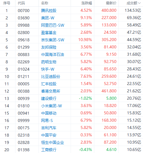 板块方面,盘面上,权重科技股全线爆发,京东飙涨11%,美团大涨超9%,网易、快手、百度涨超6%,阿里巴巴、腾讯助力恒指上涨近200点;