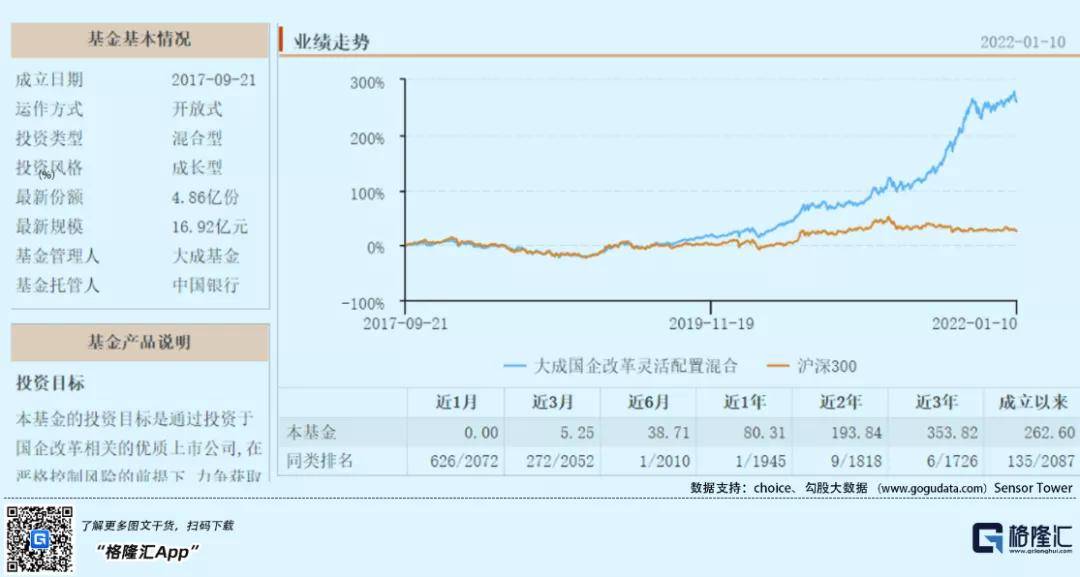 这只基金叫大成国企改革灵活配置混合,结合前几年的优秀表现,入选了2022年格隆汇二十大核心基金,今天基金君就来解析这只基金以及被誉为“创神”的基金经理:韩创。