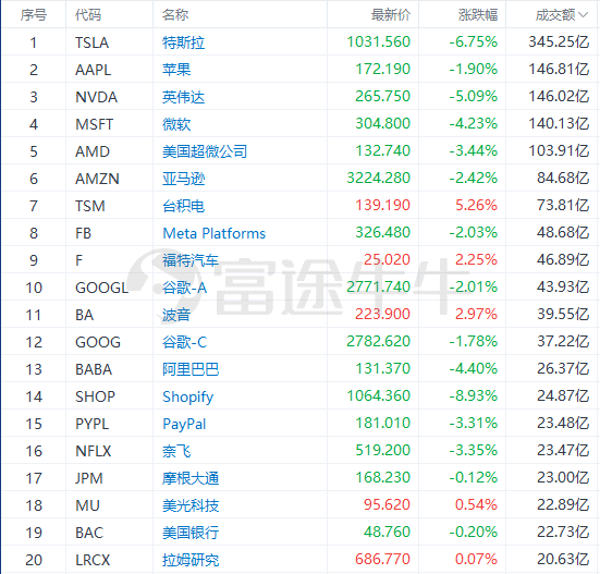 相关推荐:成交额TOP20:福特逆市上涨,市值盘中首次突破千亿美元