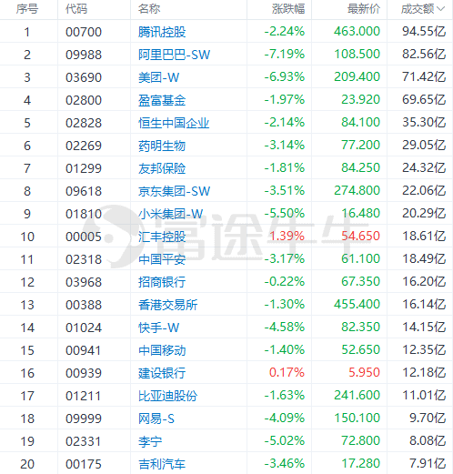 其他方面,汽车股、电力股、光伏股、内房股、物管股、生物医药股、大金融等热门板块集体重挫;惟银行、海运及港口个别板块飘红,香港银行股相对活跃,汇丰控股涨超1%。
