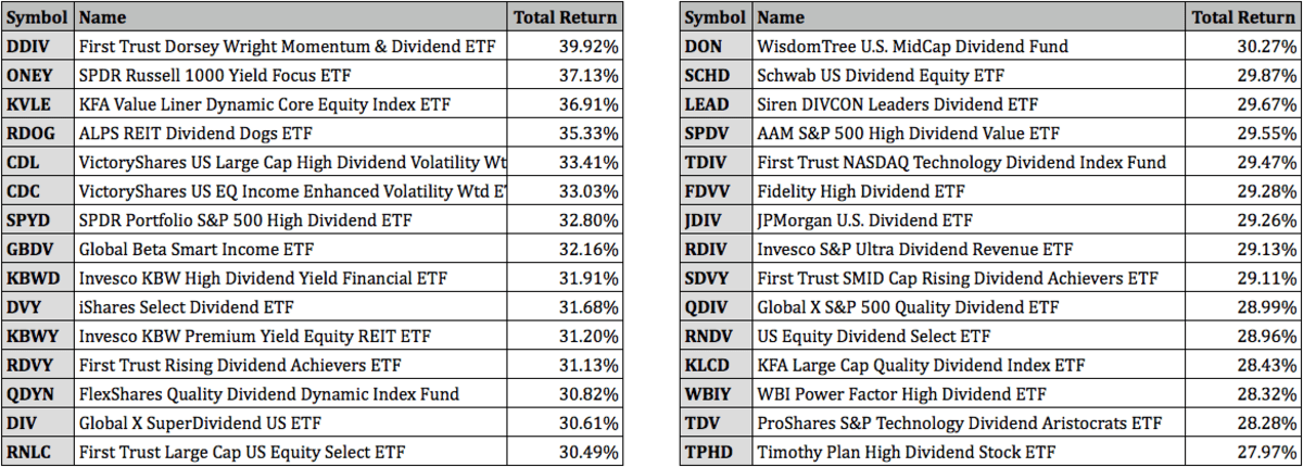 Top Performing Dividend ETFs For 2021,来源:The Street