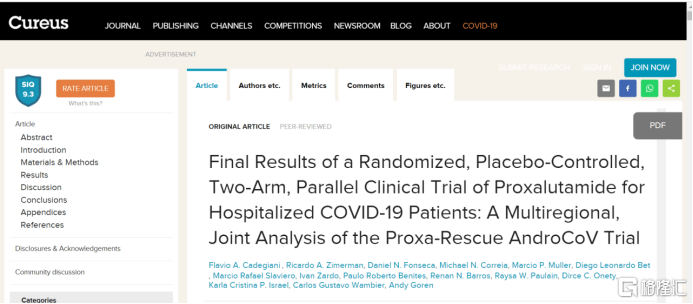 该研究发表在科学杂志《Cureus》上: https://www.cureus.com/articles/80171-final-results-of-a-randomized-placebo-controlled-two-arm-parallel-clinical-trial-of -proxalutamide-for-hospitalized-covid-19-patients-a-multiregional-joint-analysis-of-the-proxa-rescue-androcov-trial