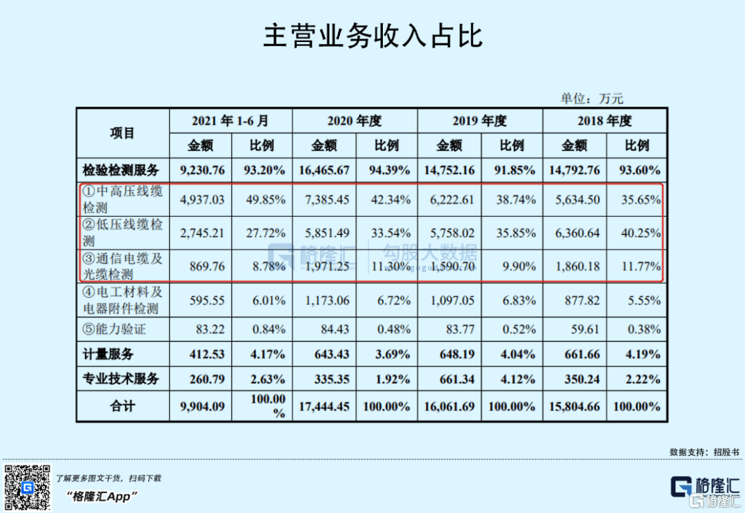 其中,报告期内,电线电缆及光纤光缆检验检测收入占主营业务收入的比例分别为87.67%、84.49%、87.18%和86.34%。