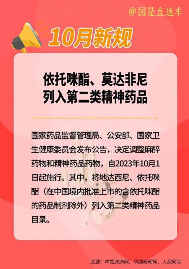 进入10月,一批新规将陆续施行。加强校外培训监管、加强婴幼儿配方乳粉产品配方注册管理、治理“假国企”蹭名乱象、依托咪酯列入第二类精神药品目录……涉及教育、医疗、食品安全、道路交通等多方面。和国是君一起来看看吧。