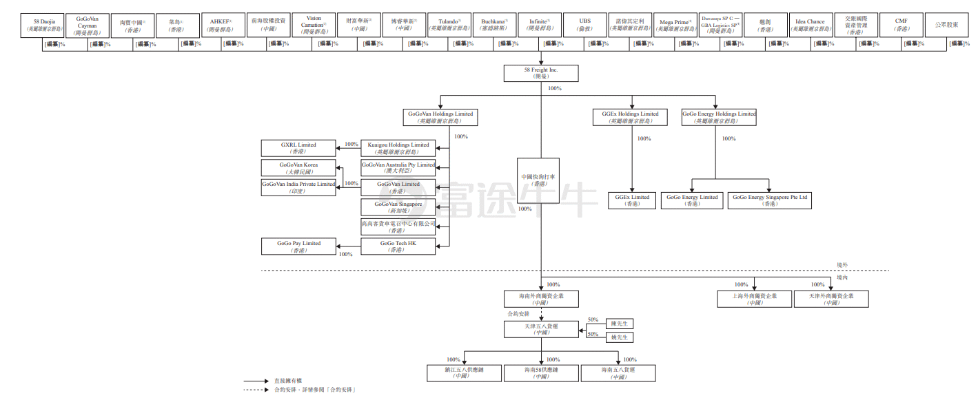 截至IPO前,快狗打车最大股东为58到家,持股比例达51.2%。GoGoVan Cayman(林凯源等股东持股)持股17.82%,阿里巴巴集团合计持股15.99%,Vision Carnation持股2.4%。