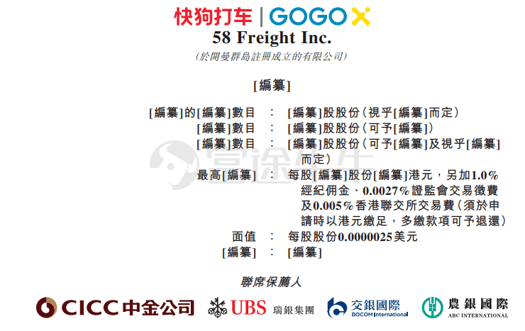 富途资讯8月27日消息,根据港交所披露,快狗打车向港交所递交招股书,中金公司,瑞银集团,交银国际及农银国际为联席保荐人。