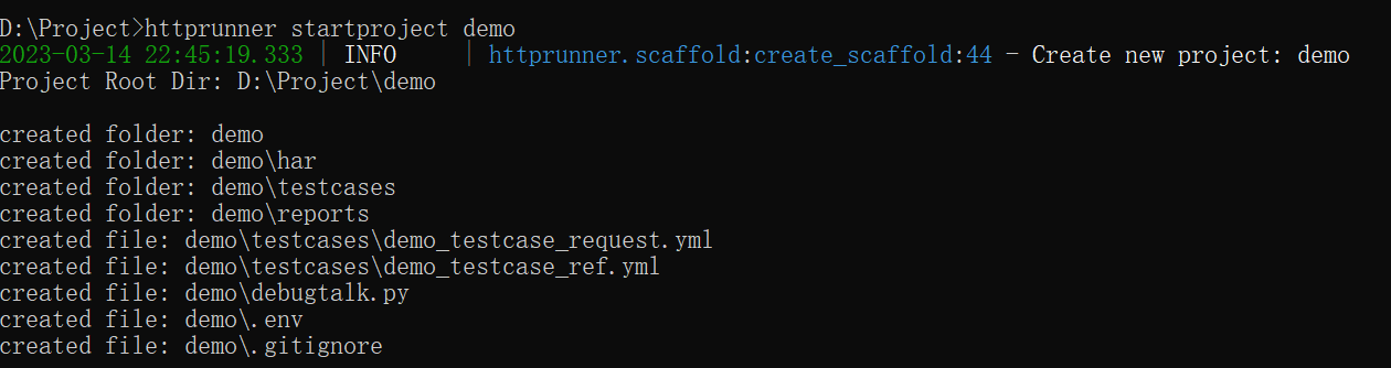 进入项目所在目录,打开命令行,输入创建名为demo的项目