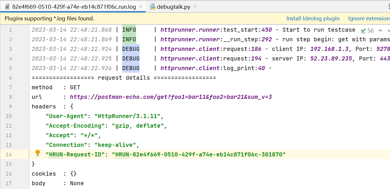 logs文件目录下为每个用例执行产生的日志,可以看到用例执行的详细信息。