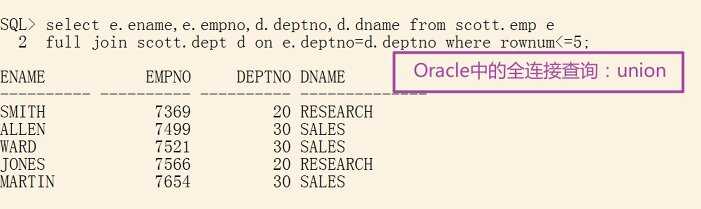 full join scott.dept d on e.deptno=d.deptno where rownum<=5;