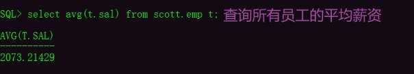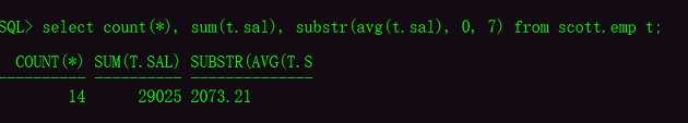 select count(), sum(t.sal), substr(avg(t.sal), 0, 7) from scott.emp t;