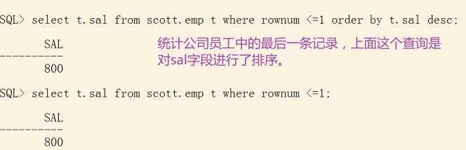 Oracle中的rownum伪列统计公司员工中的最后一条记录,通过rownum实现:select t.sal from scott.emp t where rownum <=1;