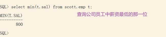 返回最小值min查看员工中薪水最低的那一位:select min(t.sal) from scott.emp t;