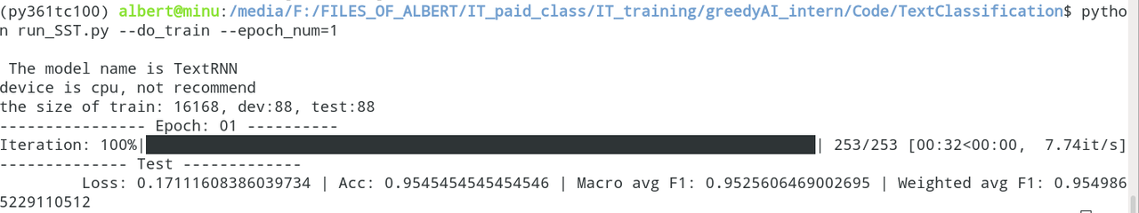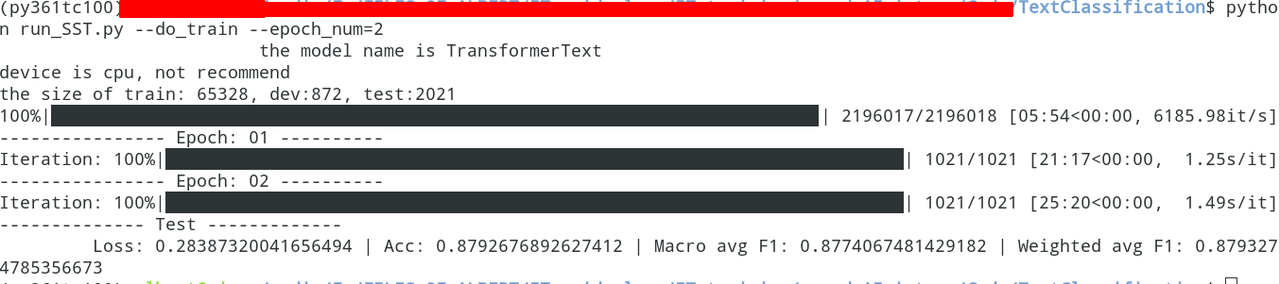 python run_SST.py --do_train --epoch_num=10 # train and test没有任何报错,可以正常运行了