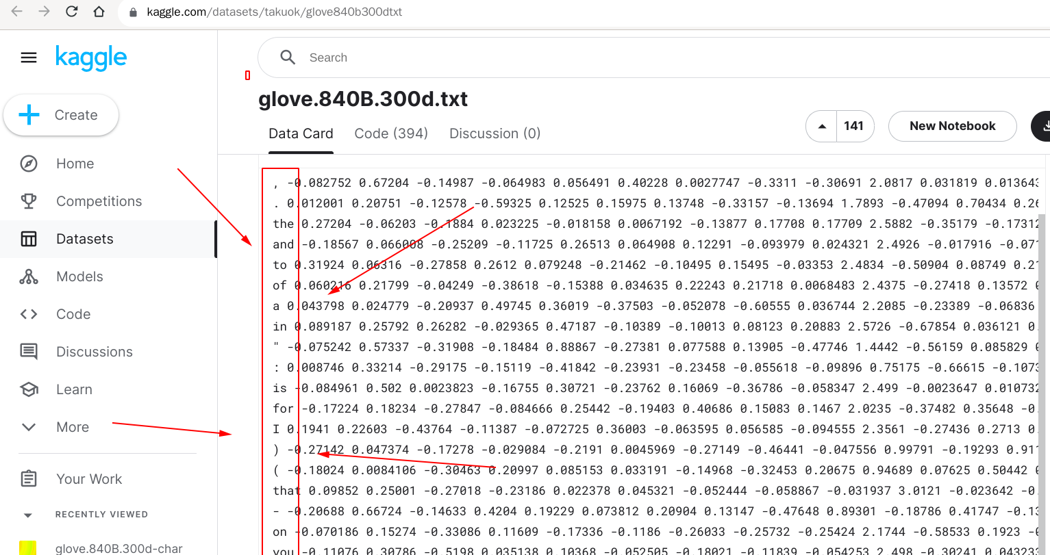 这里作者选用的过来glove这个方法训练出来的词嵌入的一个文件。“glove.840B.300d.txt”