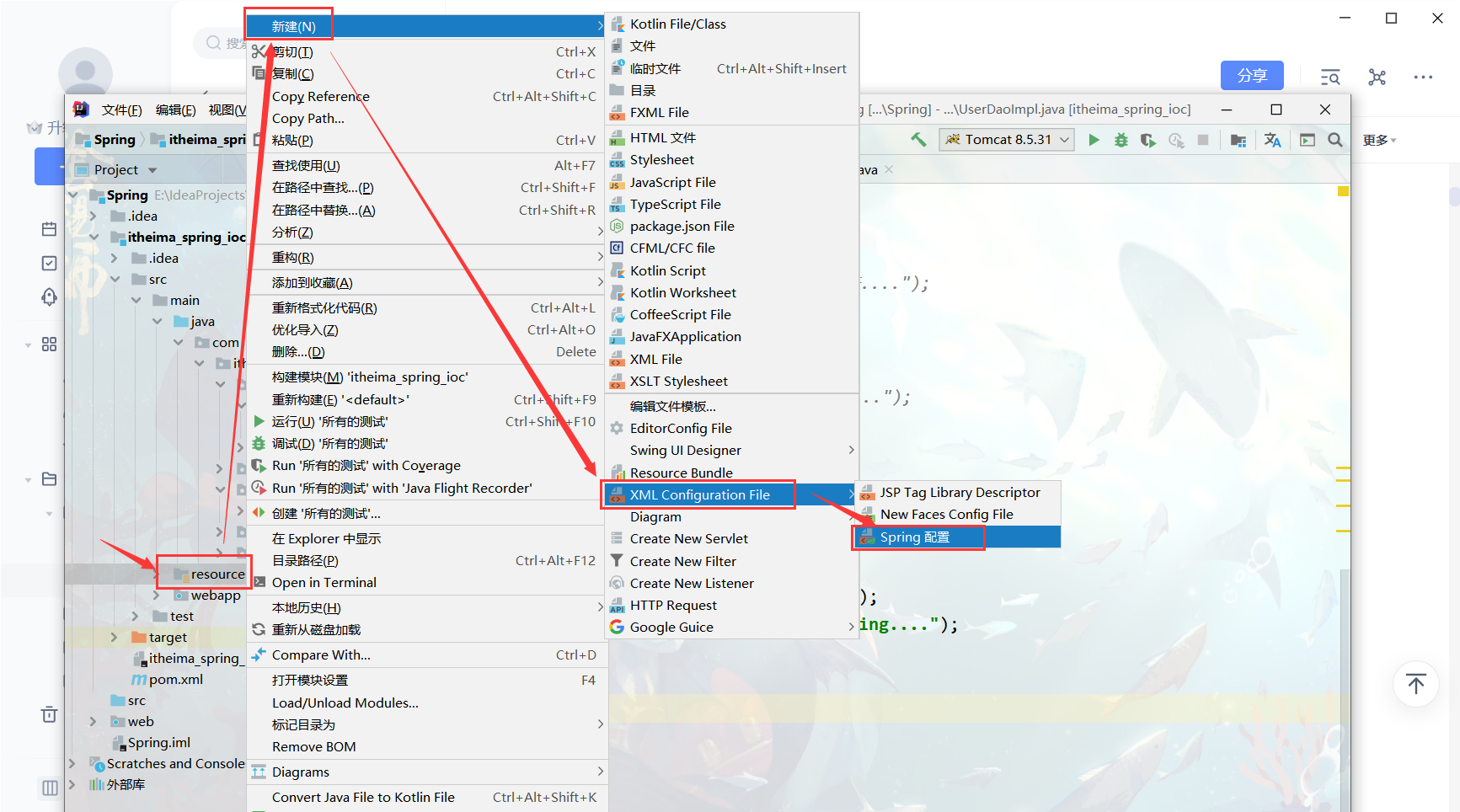}在类路径下(resources)创建applicationContext.xml配置文件