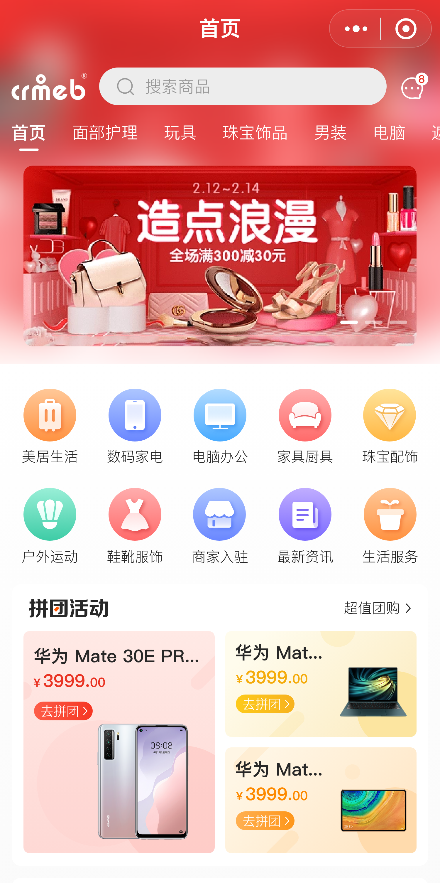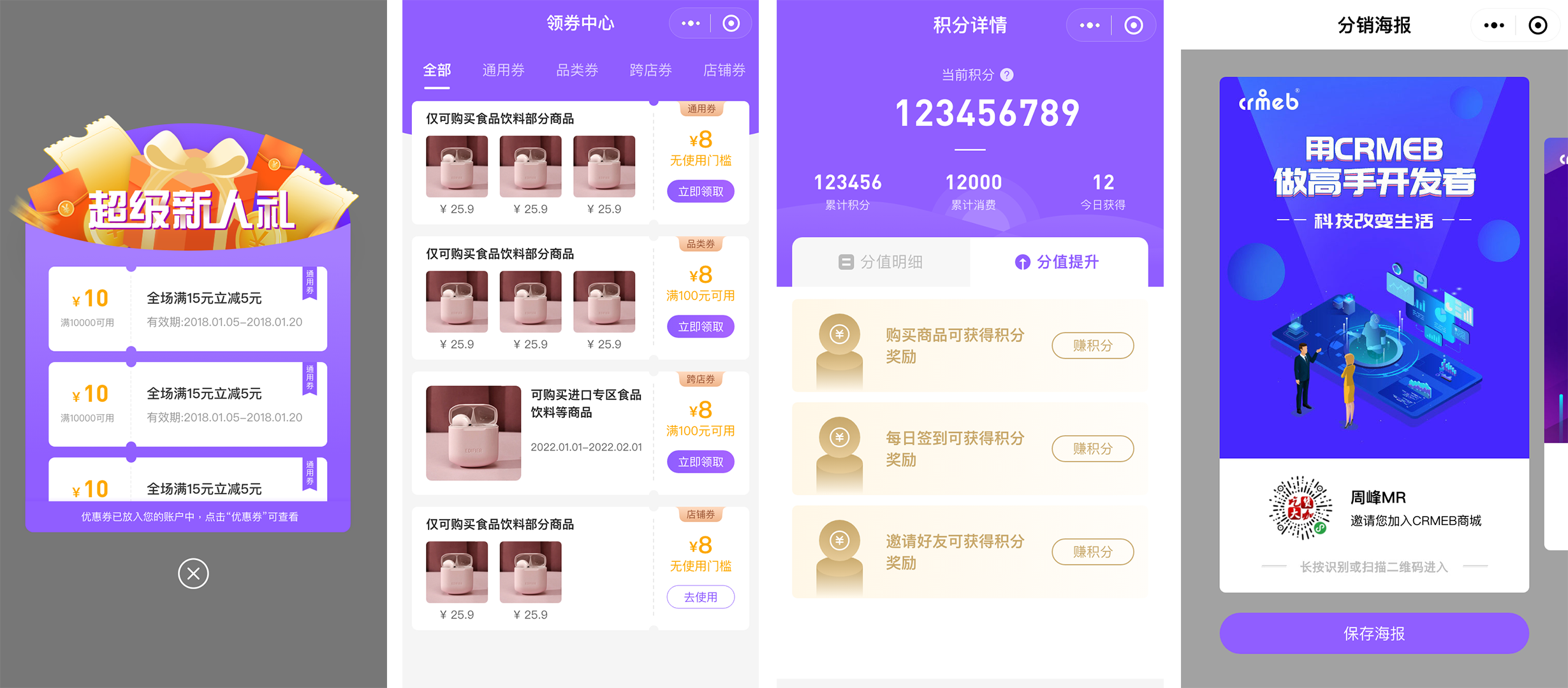 CRMEB多商户商城系统,具有平台、商家、商品、订单、客户等多种管理功能,还有拼团、砍价、秒杀、直播、预售、优惠券、分销裂变、积分商城等多种营销功能,可以满足商城平台方、店铺商户进行日常应用管理、举办营销活动。
