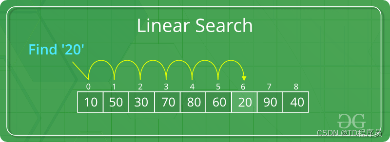 下图为线性搜索在给定的数字列表中找到元素“20”