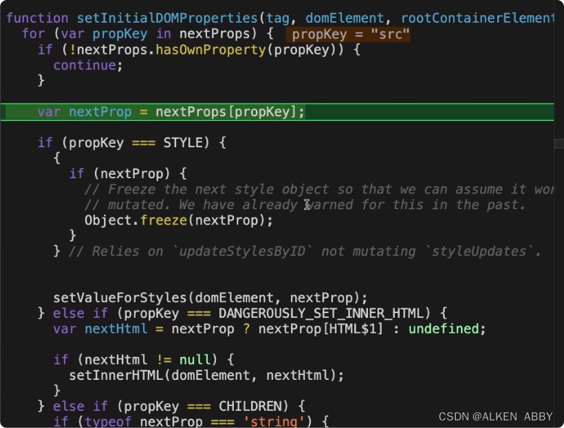 - 最后在 finalizeInitialChildren 给 dom 节点设置一些属性,img 节点上加上了 alt,className 等属性