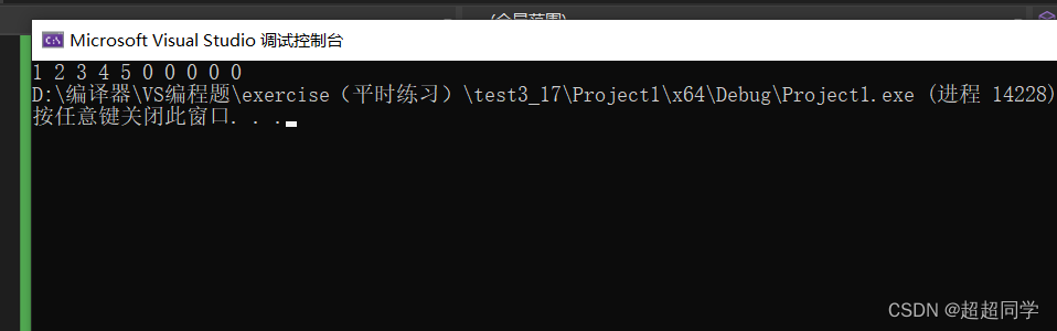 这里详细讲一下实现过程,这个函数的实现思路其实很简单的,就是一一赋值,这里因为我们不知道使用者想要拷贝什么类型的数据,所以就是我们要把强制类型转换为char*,这样就可以一个一个字节的拷贝了,但是要注意的是,强制类型转换是临时的,也就是不是永久性的,这个要谨记,不然拷贝的时候会报错。下面来看看我们打印结果:
