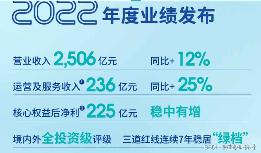 3月17日,龙湖集团发布了2022年度业绩报告。财报显示,2022年全年,龙湖实现营业收入2505.7亿元,同比增长12.2%;实现归属于股东的核心净利润225.4亿元,同比亦稳中有增。