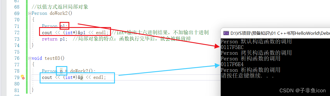 以值返回局部对象会调用拷贝构造函数,对p2进行一次PersonAddAge操作后,将p2的结果拷贝为p2’,所以p2还是经过了一次加年龄的操作。但后面的PersonAddAge操作都是对p2’,p2"了,所以p2.age不会一直增加
