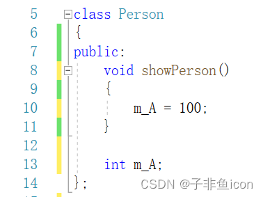 {Person p;cout << p.m_A << endl;Person p2;p2.m_A = 200;cout << p.m_A << endl;}void test02()