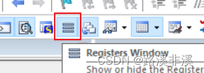 该窗口可在"View->Registers Window"处打开,也可以在工具栏打开。