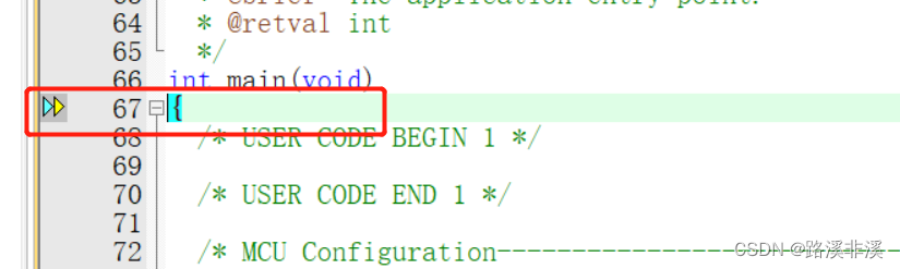 如果前面工程配置里选择了复位调试,则进入调试后,会停在main函数头部
