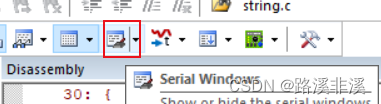 该窗口在"View->Serial Windows"中打开,也可以在工具栏打开。