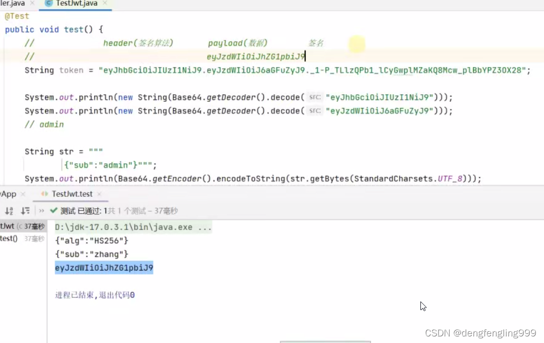 tocken前面header和数据用了Base64进行了编码,我们在解码查看一下: