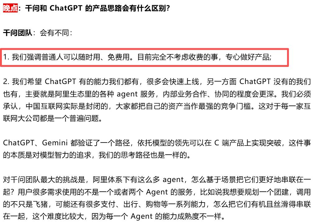 在接受《晚点》采访时,千问团队提到:“千问App目前完全不考虑收费的事,专心做好产品。”免费策略曾是中国互联网时代崛起的重要武器。