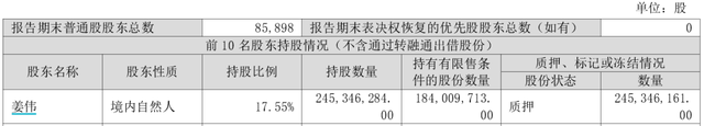 2018年以来,姜伟因前期重资产、长周期项目投入,采取短债长投模式导致利息负担沉重,加之股价连续下跌,其股票质押比例大幅上升。